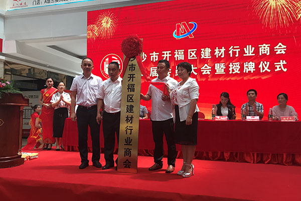8月22日,长沙市开福区建材行业商会第二届会员大会暨授牌仪式在高岭商贸城召开。市工商联副主席张明刚,开福区委常委、统战部长何惠风,开福区统战部副部长、区工商联党组书记张曙辉及区工商联全体领导班子出席仪式,开福区工商联(总商会)主席(会长)鲁碧君主持会议。