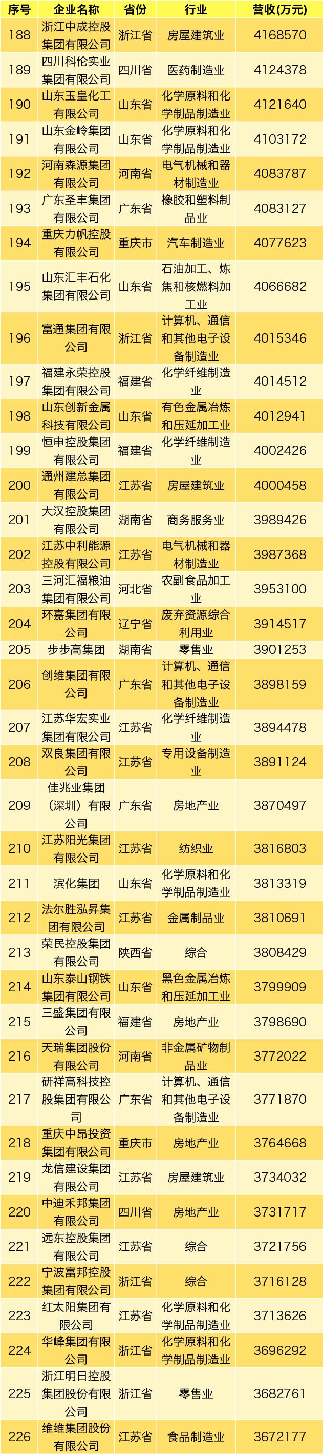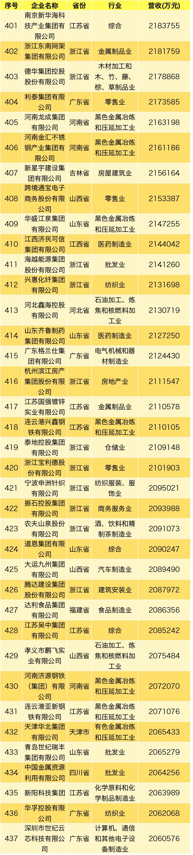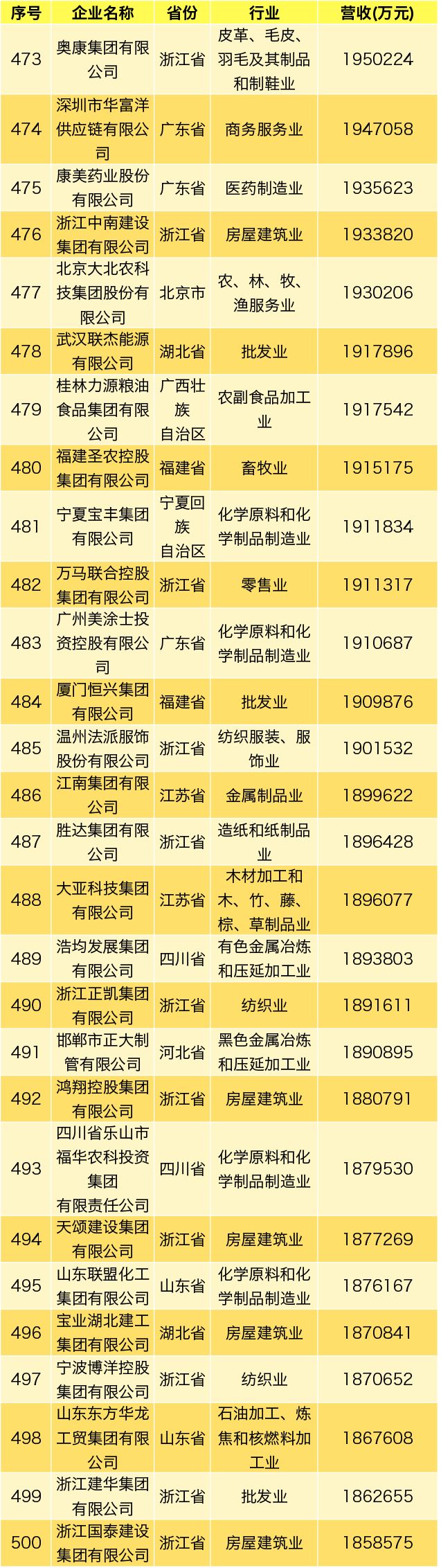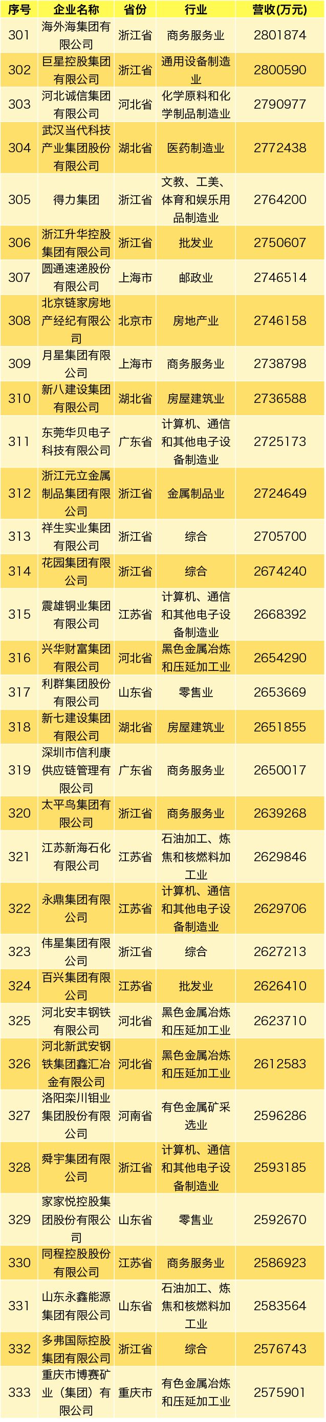 海航集团、苏宁控股分别以6182.93亿元和6024.56亿元的营业收入排名第二和第三位。正威国际集团、恒大集团、京东集团、碧桂园控股、恒力集团、联想控股、国美控股进入前十。本次500强上榜门槛为185.85亿。