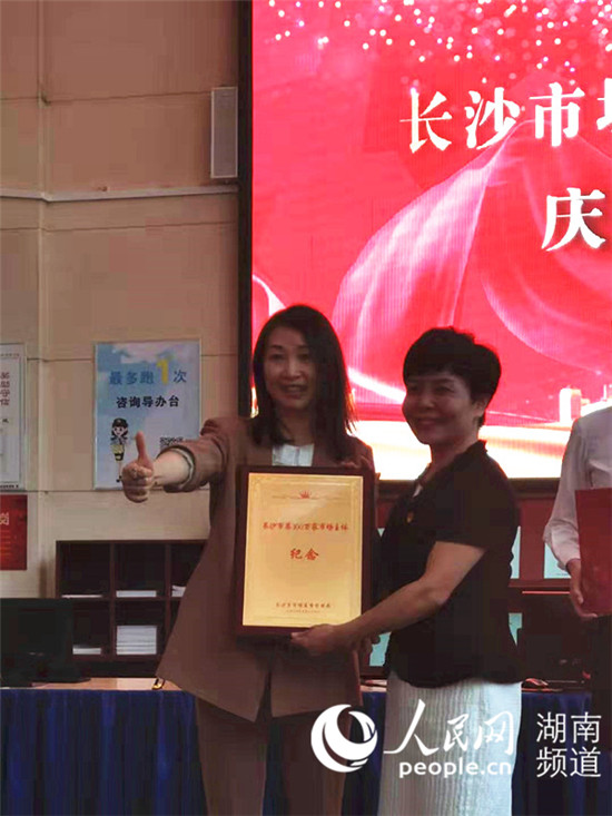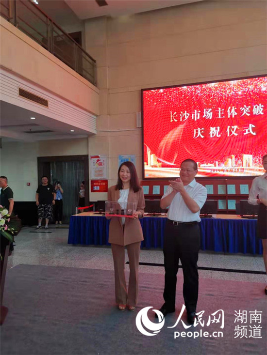 雨花区委书记张敏向第一百万市场主体赠送公章。何勇摄