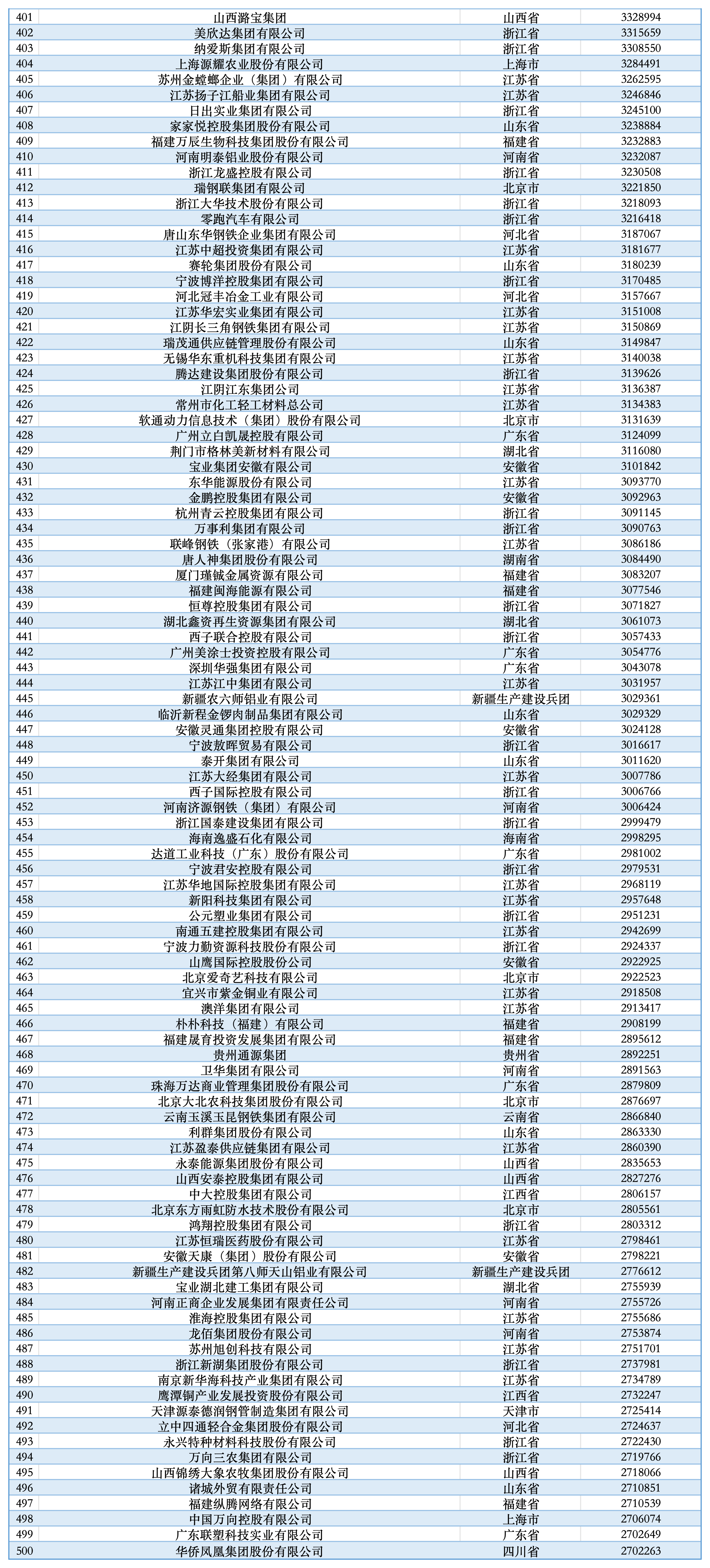 民营企业500强中,有361家企业的营业收入较上年增长,其中,增幅超过5%的企业有237家,增幅超过10%的企业有161家。营业收入超过千亿元的105家企业中,营业收入增幅超过5%的企业有64家,增幅超过10%的企业有44家,增幅超过20%的企业有20家。有380家企业的资产较上年增加,其中,增幅超过5%的企业有262家,增幅超过10%的企业有170家。资产超过千亿元的97家企业中,资产增幅超过5%的企业有53家,增幅超过10%的企业有33家,增幅超过20%的企业有11家。